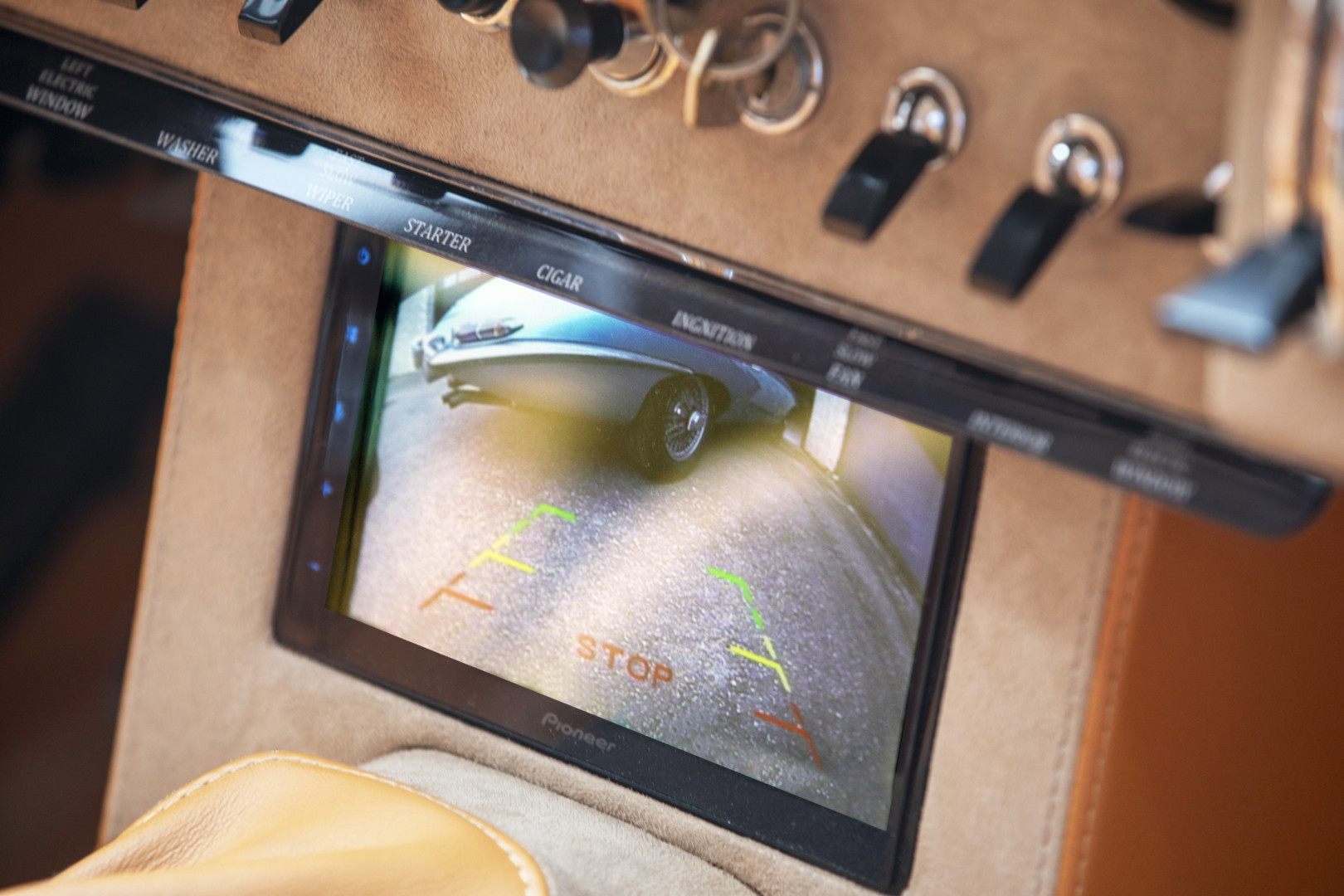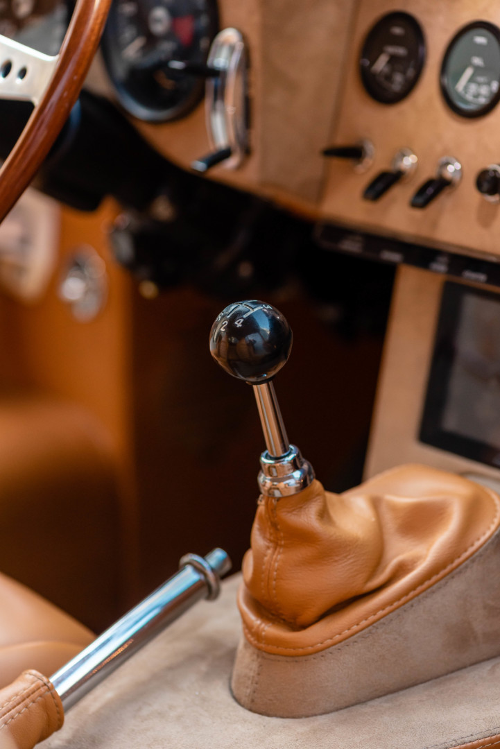 Lors de sa restauration de cette Jaguar type E, nous avons intégré un système multimédia Pioneer équipé d’Apple CarPlay, permettant également l’ajout d’une caméra de recul, ainsi qu'une direction assistée électrique -  un véritable atout pour les manœuvres.