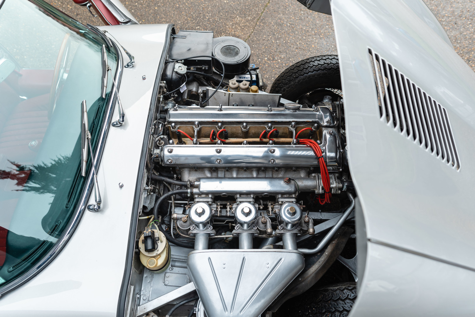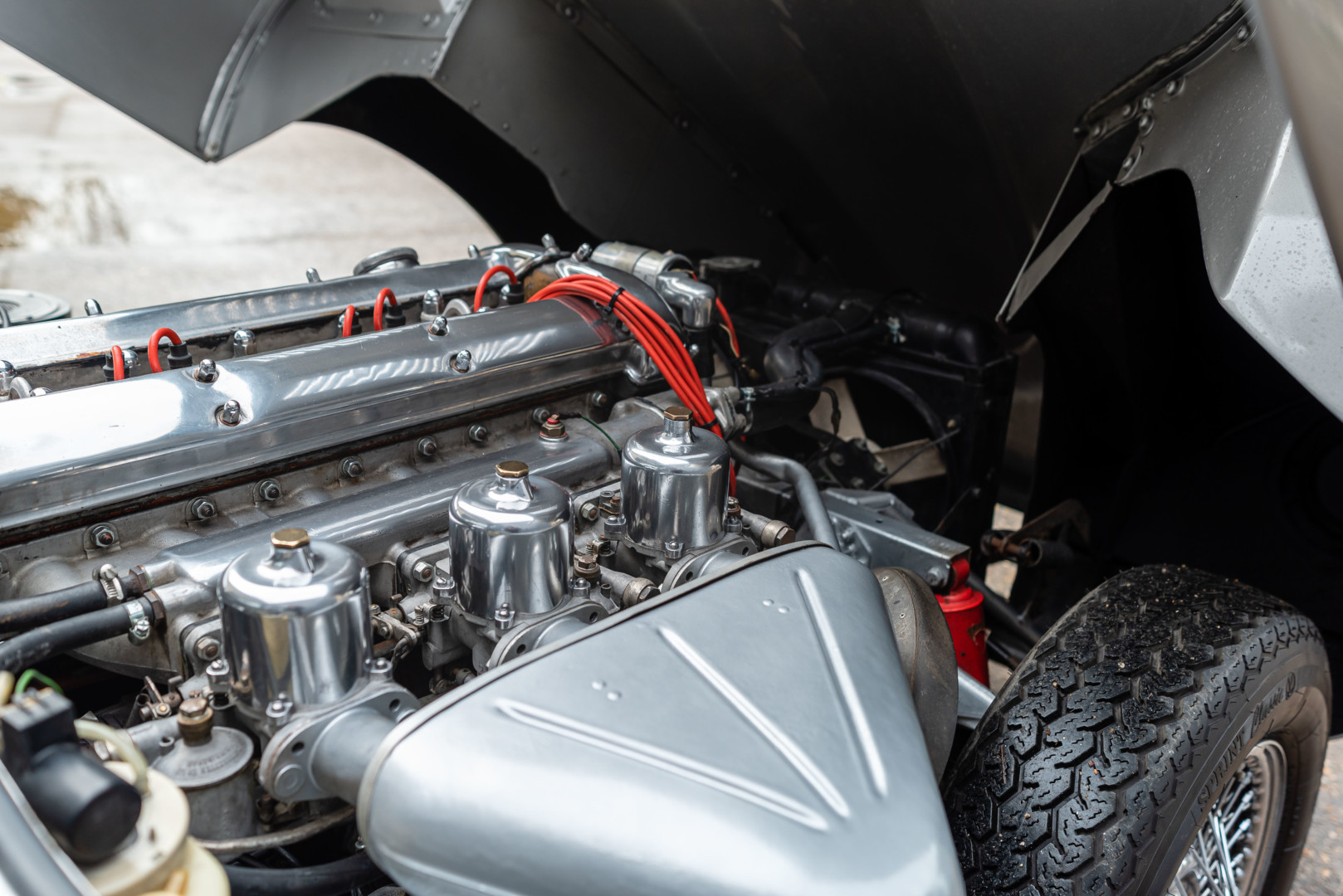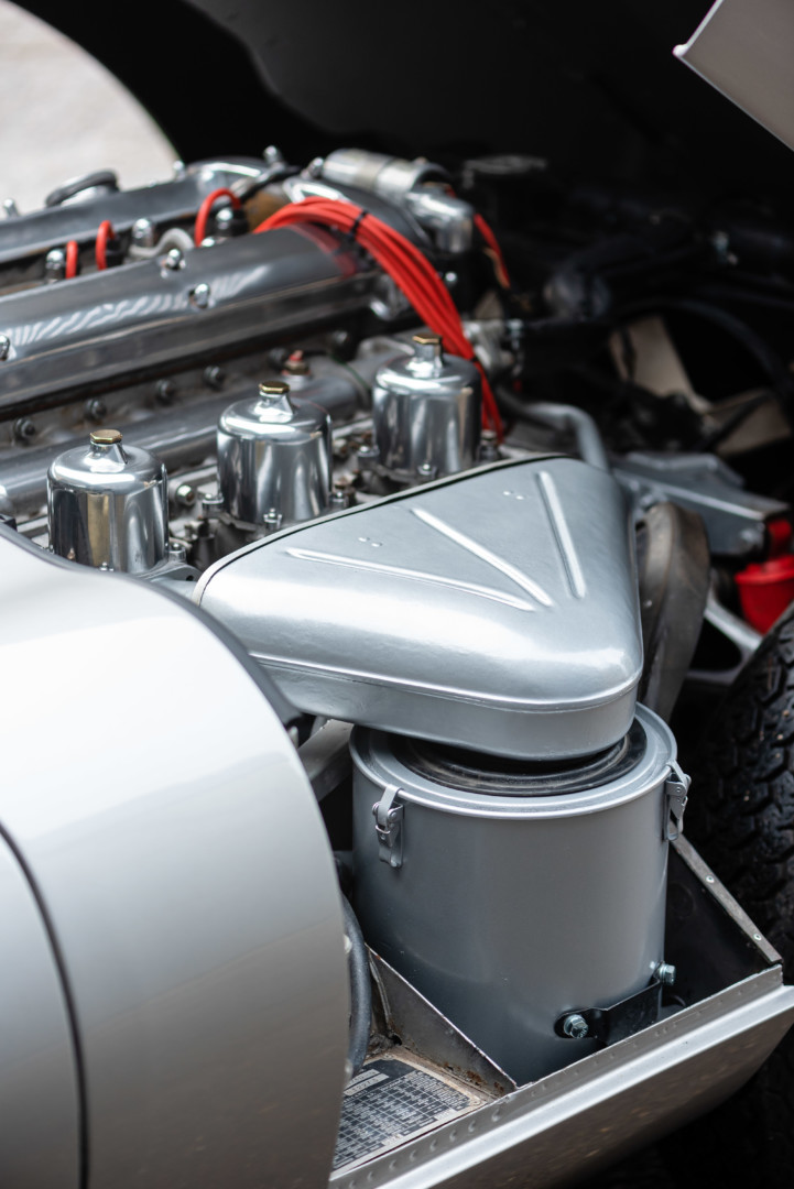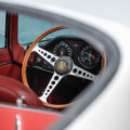 La Type E se distingue par ses quatre roues indépendantes, ses freins à disque, son châssis monocoque, ainsi que par un habitacle raffiné associant volant en bois, tableau de bord en aluminium et sièges baquets. Sa ligne fluide est soulignée par les phares carénés, tandis que le légendaire moteur XK, alimenté par trois carburateurs SU, développe une puissance et des performances exceptionnelles pour l’époque.
