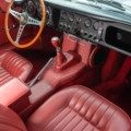 Les cuirs rouges, soigneusement sélectionnés, sont aujourd’hui encore dans un état remarquable. À l’époque, nous avions réalisé un intérieur sur mesure entièrement en cuir, conciliant modernité et respect de l’esthétique Jaguar.
