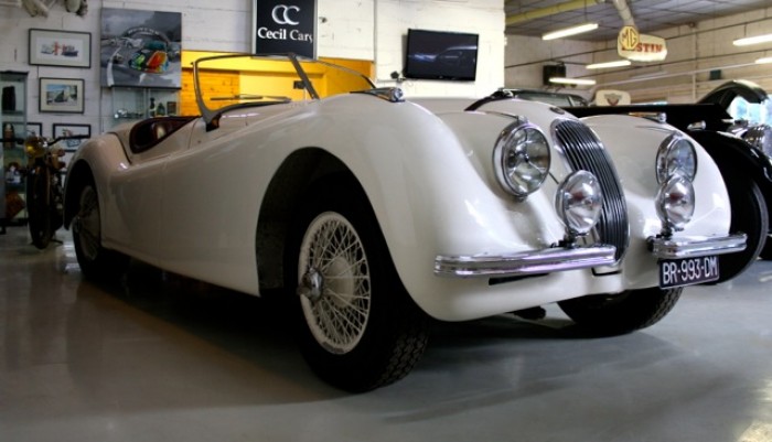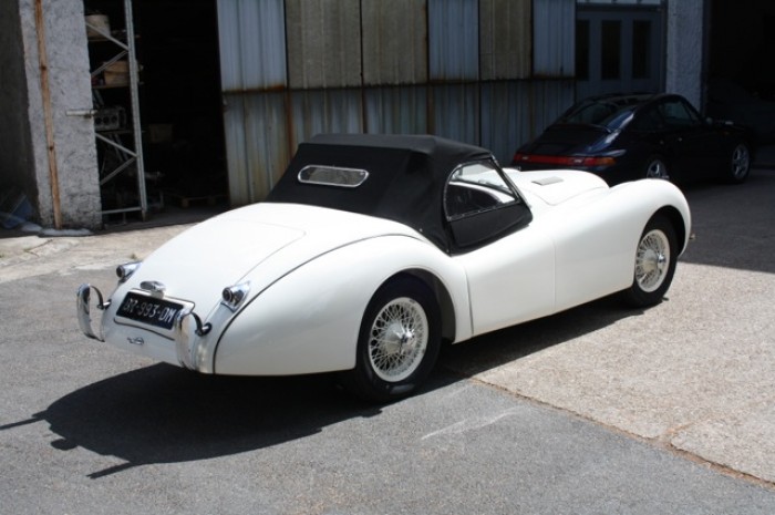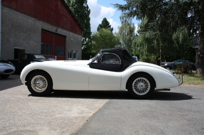Voici la Jaguar XK 120 n°15 (n° de série 670015) sortie de l'usine en 1949 et intégralement restaurée dans nos ateliers.