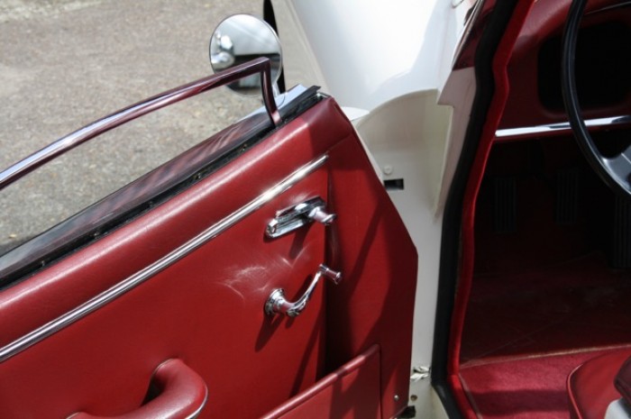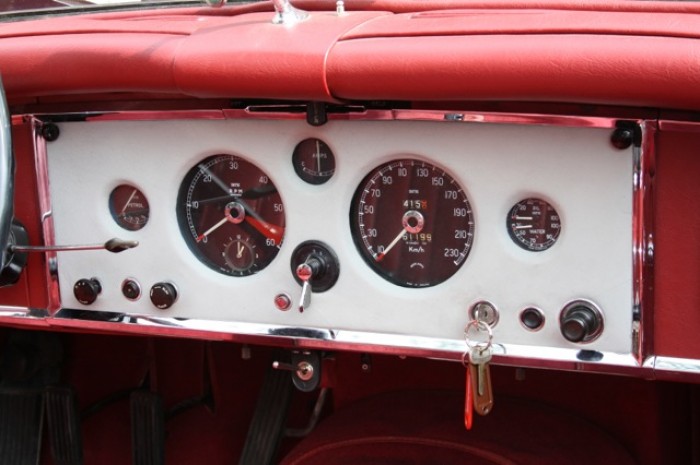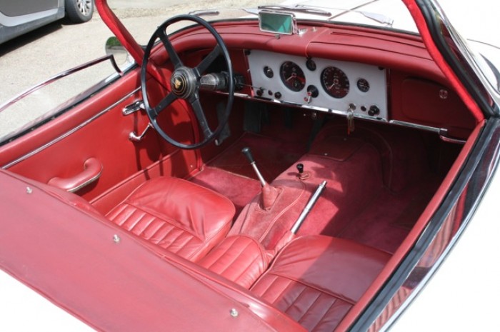 Cette Jaguar XK150 française d’origine est en excellent état mécanique, parfaitement entretenue. Elle a sa carrosserie d’origine sans corrosion avec une très jolie peinture. La sellerie cuir est en excellent état avec juste une légère patine. Elle est matching numbers et ne nécessite aucun travaux avant utilisation. Il s’agit d’un modèle rare, une des 12 vendues neuves en France. Son Overdrive est mécanique.