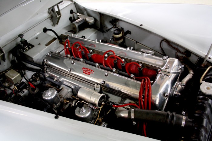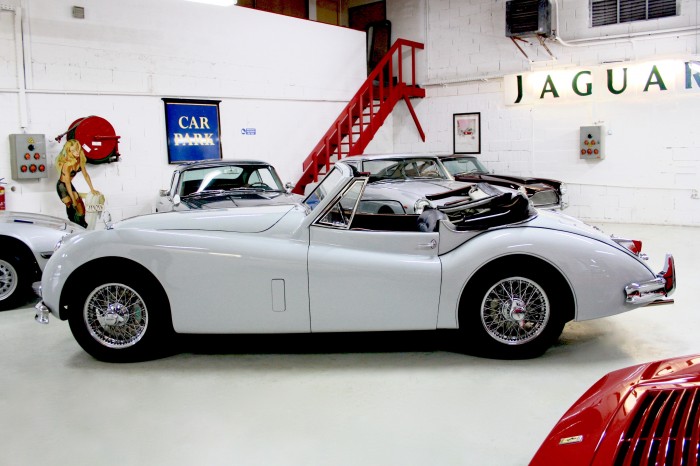 Mécaniquement cette nouvelle Jaguar XK 140 reçoit d'origine le moteur de 190 chevaux qui équipait les XK 120 "Spécial équipement", et pour la gamme sport la culasse "Type-C" pousse le moteur à 210 chevaux. Contrairement à la XK 120, Jaguar sort les 3 modèles Roadster, Cabriolet et Coupé en même temps avec en option la boite automatique (seulement 385 exemplaires). Sortie à seulement 1 488 exemplaires, le cabriolet XK 140 est l'un des modèles les plus élégants et sportifs de sa génération avec un 0 à 100 km en 8,5 secondes.