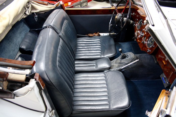 Ses cuirs bleu d'origine sont en excellent état, sa capote en alpaga bleu marine fut restaurée dans nos ateliers il y à 3 ans.