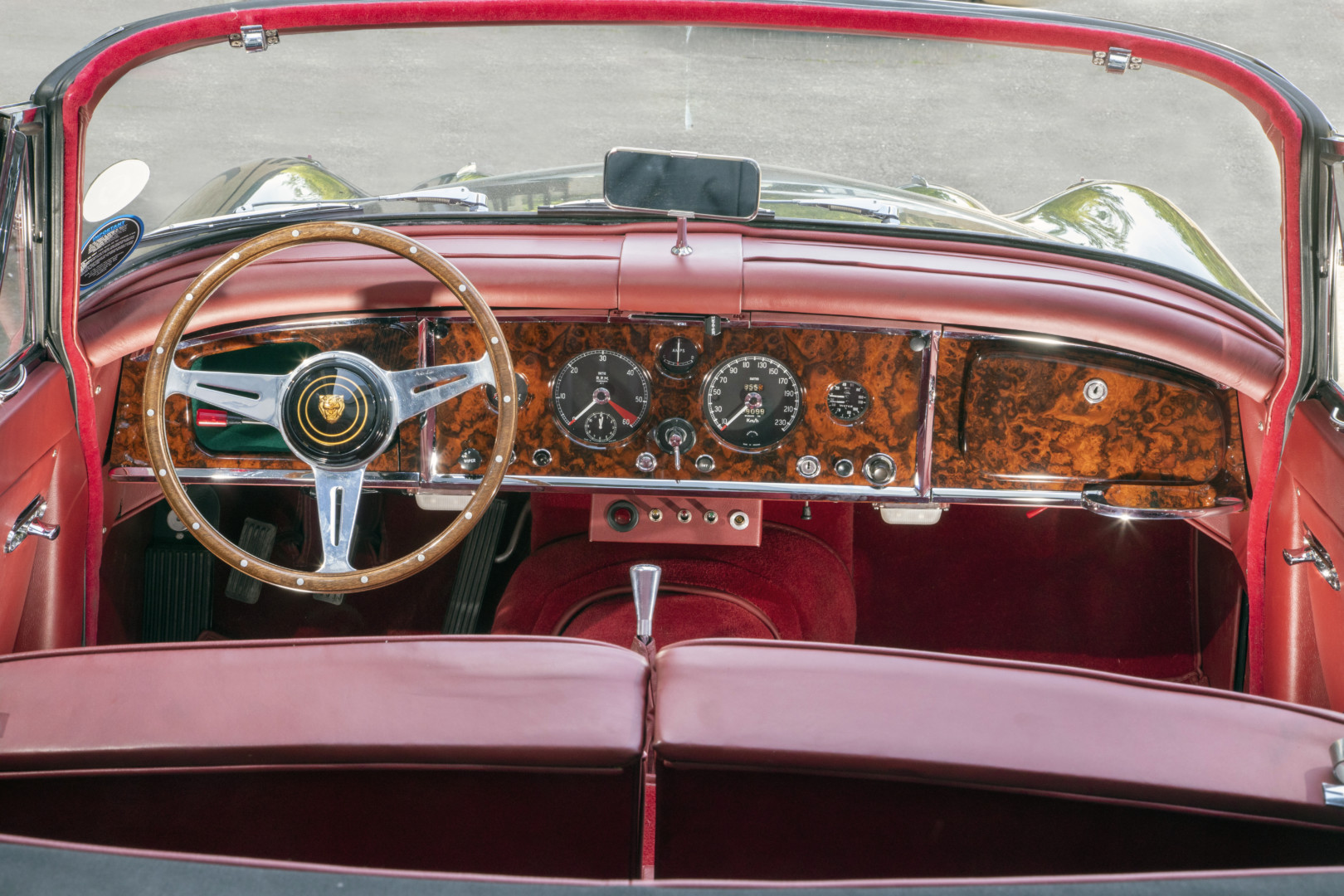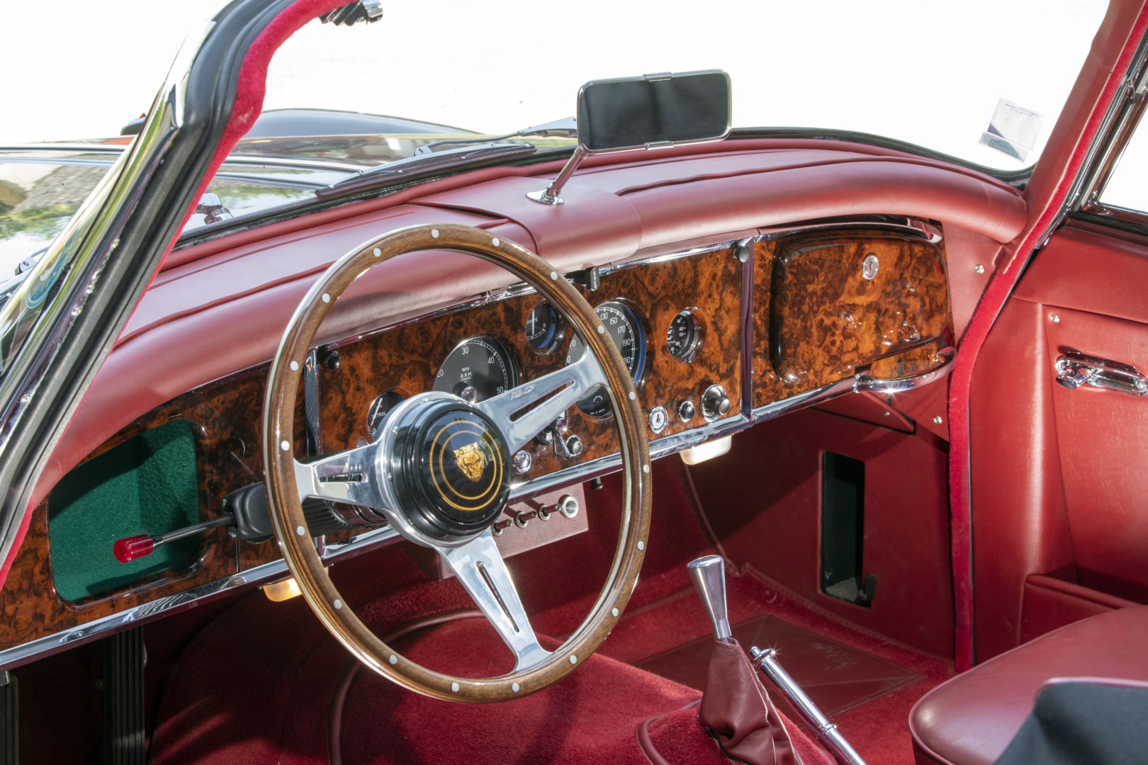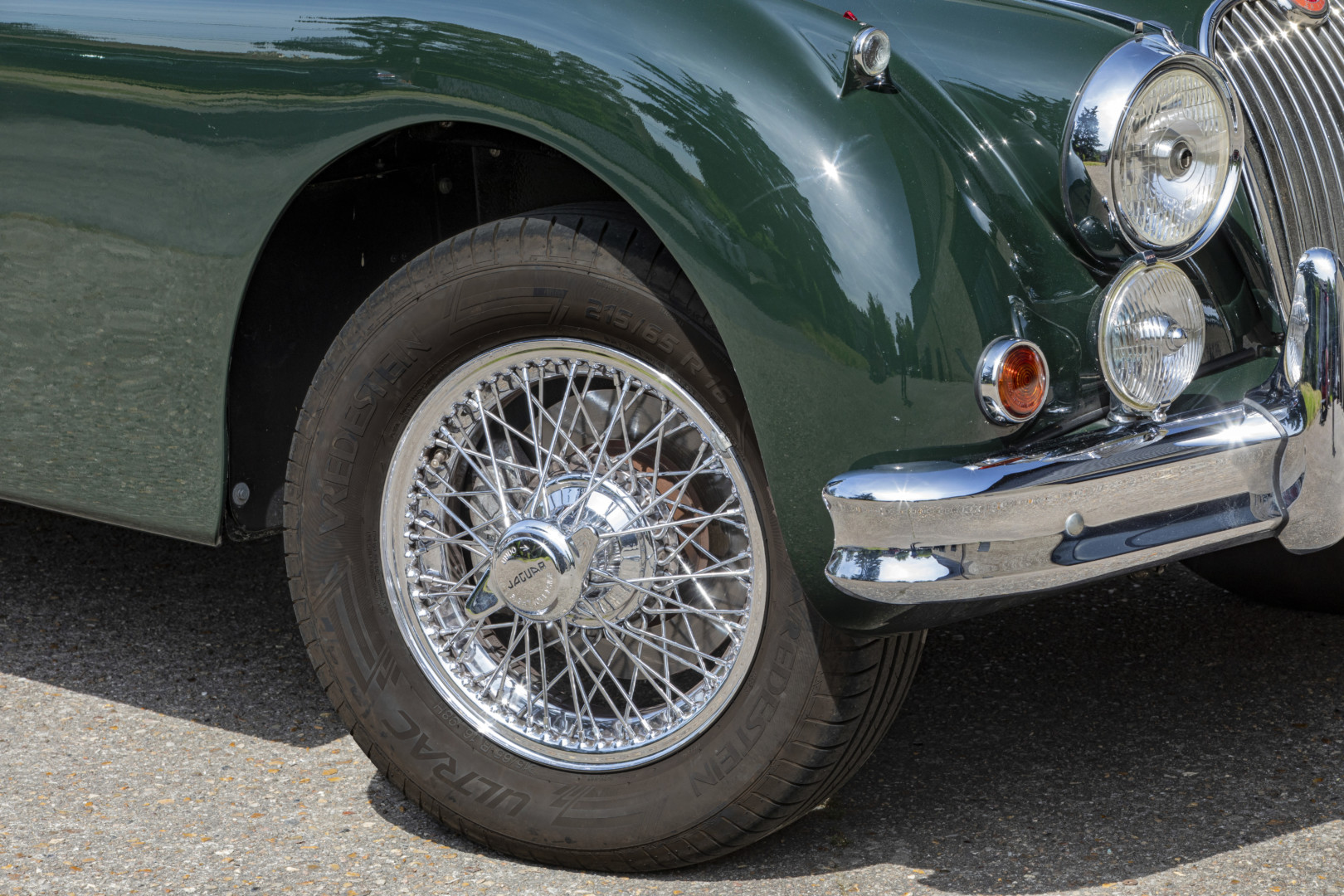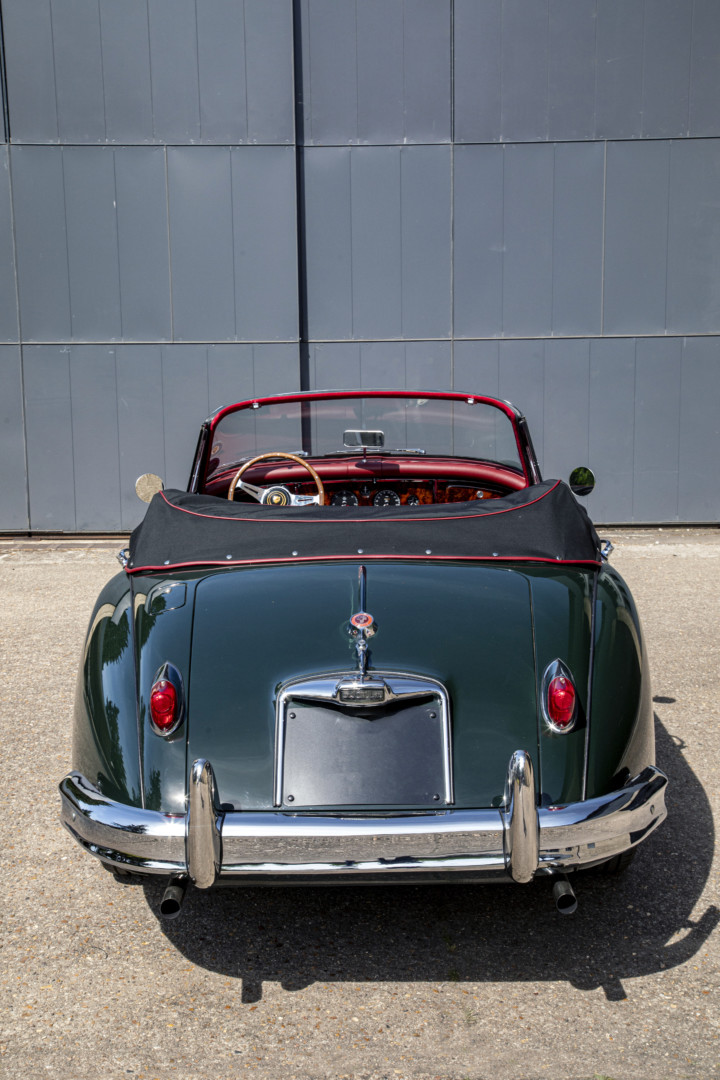 Le profil de la voiture est adouci et le pare-brise est maintenant en un seul plan bombé, comme la vitre arrière du coupé. Les freins à disques ont fait leur apparition au Mans en 1954 sur la Jaguar D-Type. La direction est à crémaillère comme sur la 140, le moteur est toujours le 3,4 litres de 190 ch. Lancée d’abord en coupé et en cabriolet, la 150 voit arriver un roadster en 1958. Plus qu’une évolution, la 150 est une voiture moderne, qui répond aux exigences du marché actuel.
