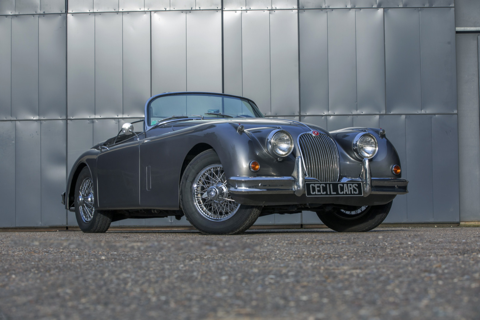 Le profil de la voiture est adouci et le pare-brise est maintenant en un seul plan bombé, comme la vitre arrière du coupé. Les freins à disques ont fait leur apparition au Mans en 1954 sur la Jaguar D-Type et sont montés d'origine sur la XK150. La direction est à crémaillère comme sur la 140, le moteur est le 3,4 litres de 190 ch.