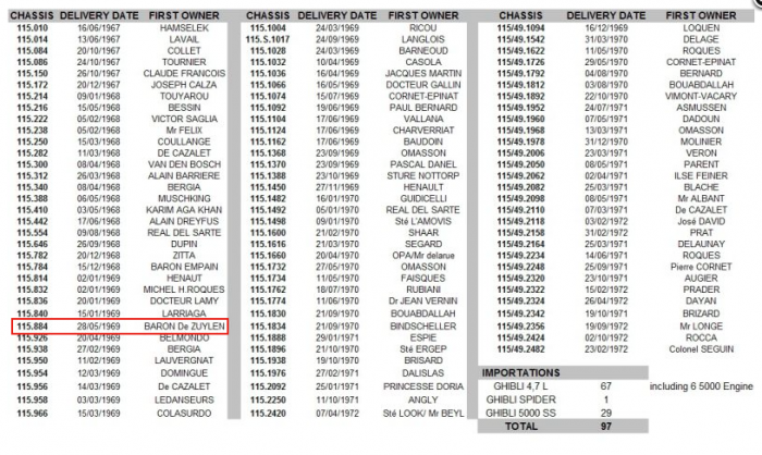 Livrée neuve le 20 avril 1969 au garage Thepenier à Paris, elle fut vendue en septembre au Baron De ZUYLEN.