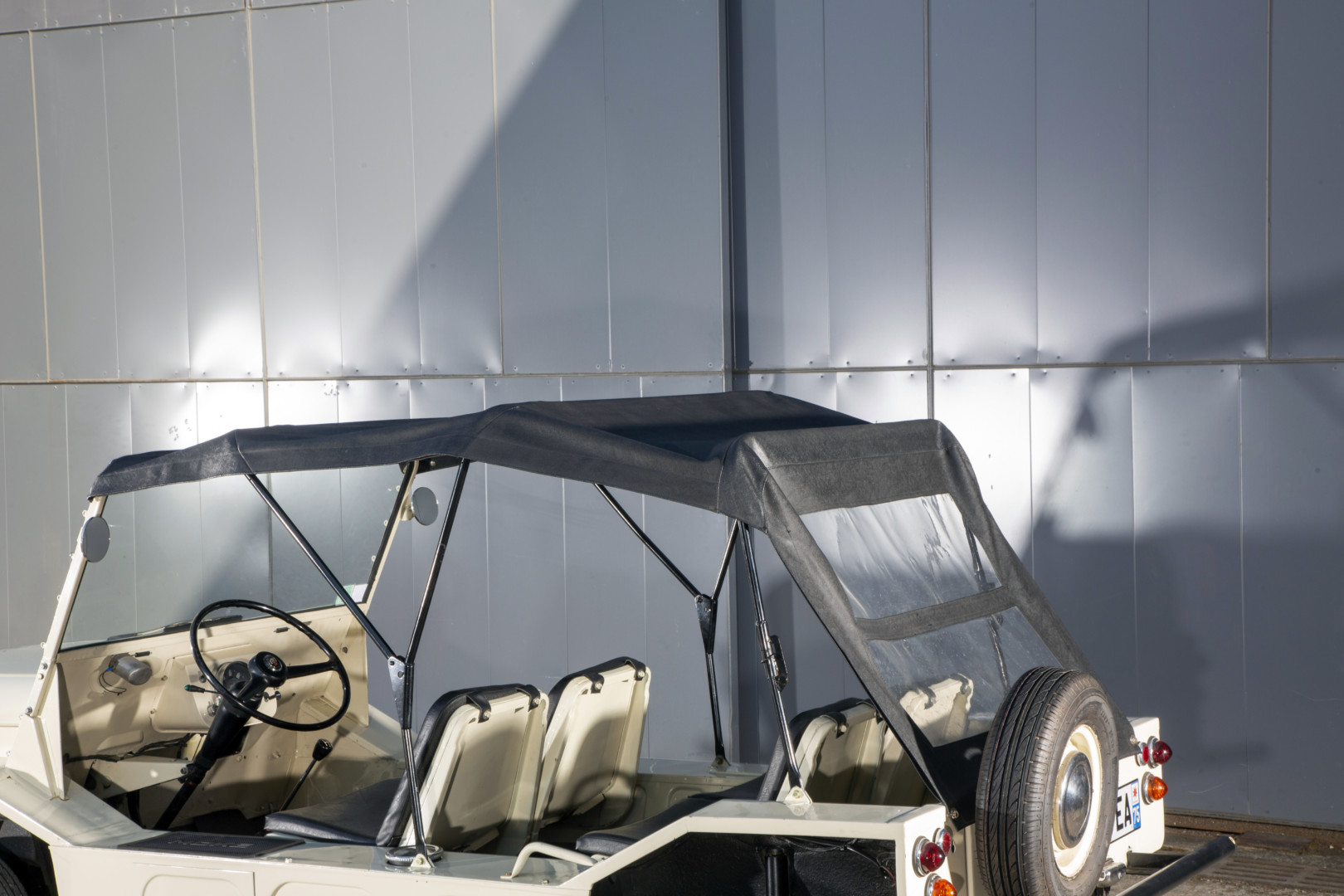 Sa sellerie noire est très simple et très belle, sa capote est neuve.
