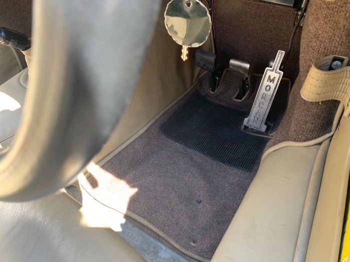 Elle possède sa sellerie d'origine en cuir beige en très bel état. Elle est équipée de sont couvre tonneau, sa capote et également ses side-screen.