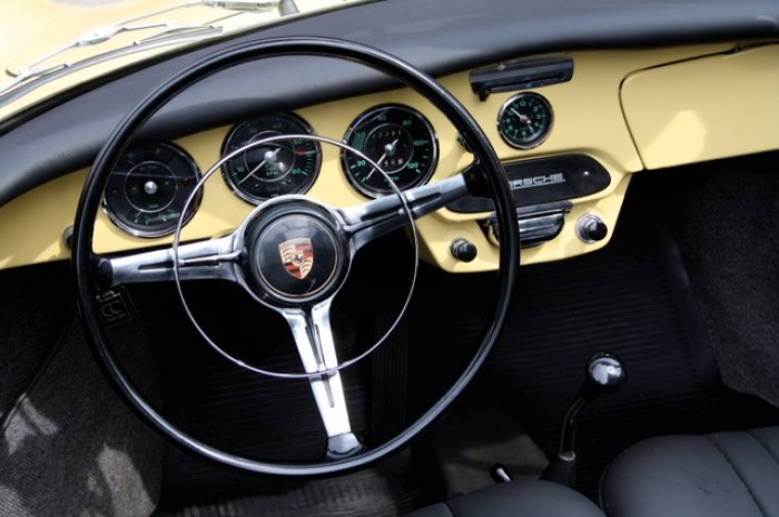 Une couleur d'origine et une sellerie cuir noir viennent mettre en valeur cette superbe Porsche 356.
