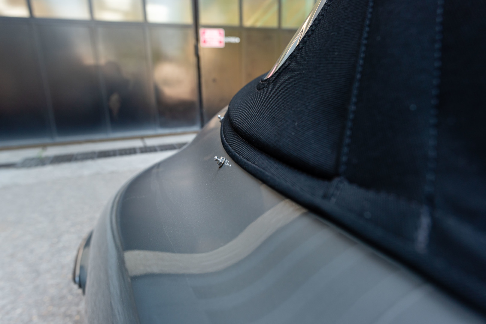 La carrosserie a fait l’objet d’une restauration complète en 2020, avec une reprise intégrale des soubassements. À cette occasion, la caisse a été entièrement démontée et mise à nue, puis repeinte dans sa teinte : gris argenté, conforme à sa configuration précédente.