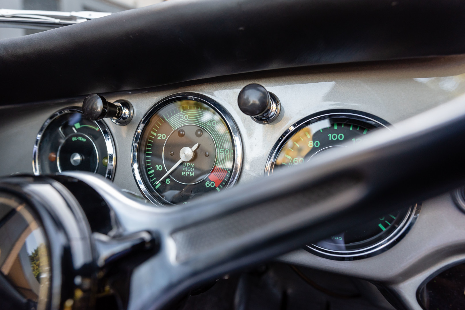 Elle bénéficie également d’équipements d’époque recherchés, tels que des pare-soleil, un volant d'origine en parfait état et son tripmaster, parfaitement intégré à l’ensemble pour participer à des rallyes historique.