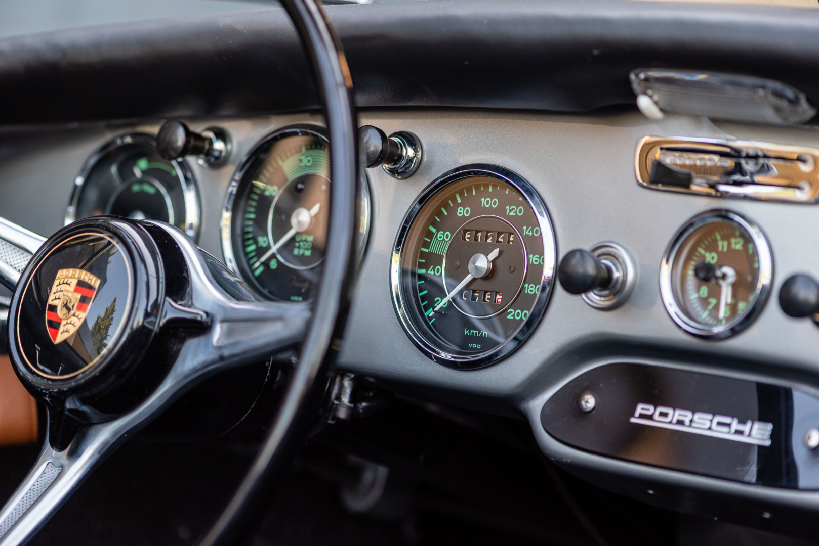 Sur le plan mécanique, elle conserve le célèbre flat-4 refroidi par air, décliné en plusieurs puissances. Les versions les plus performantes allant jusqu’à 75 ch (Super 90). La Porsche 356B gagne également en tenue de route, freinage et confort. Mais tout en conservant l’agilité et la légèreté qui font la réputation de la lignée.
