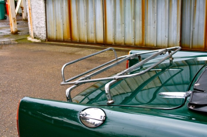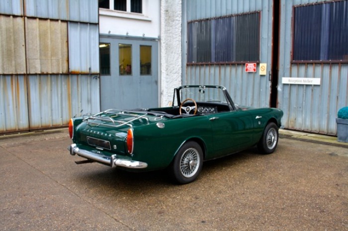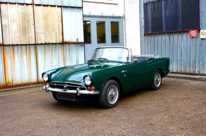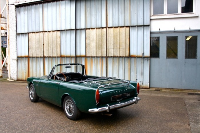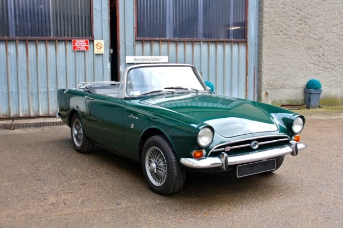 Cette Sunbeam Alpine est entretenue chez nous depuis 7 ans. Sans corrosion et en très bon état mécanique, cette auto peut partir par toutes distances. Sa sellerie d'origine en cuir noir est très belle et sa capote en toile est très propre.